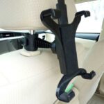 Универсална стойка за таблет от 7″ инча нагоре, която се монтира на гърба на предните седалки (към подглавник).