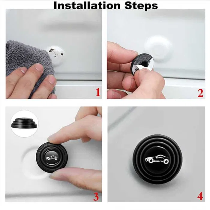 Ударни тампони/подложки за врати и капаци на автомобила. Уплътняват малки луфтуве между металните детайли, спират тракането и са безопасни за боята. Лесно се монтират – просто почистете мястото и ги залепете.